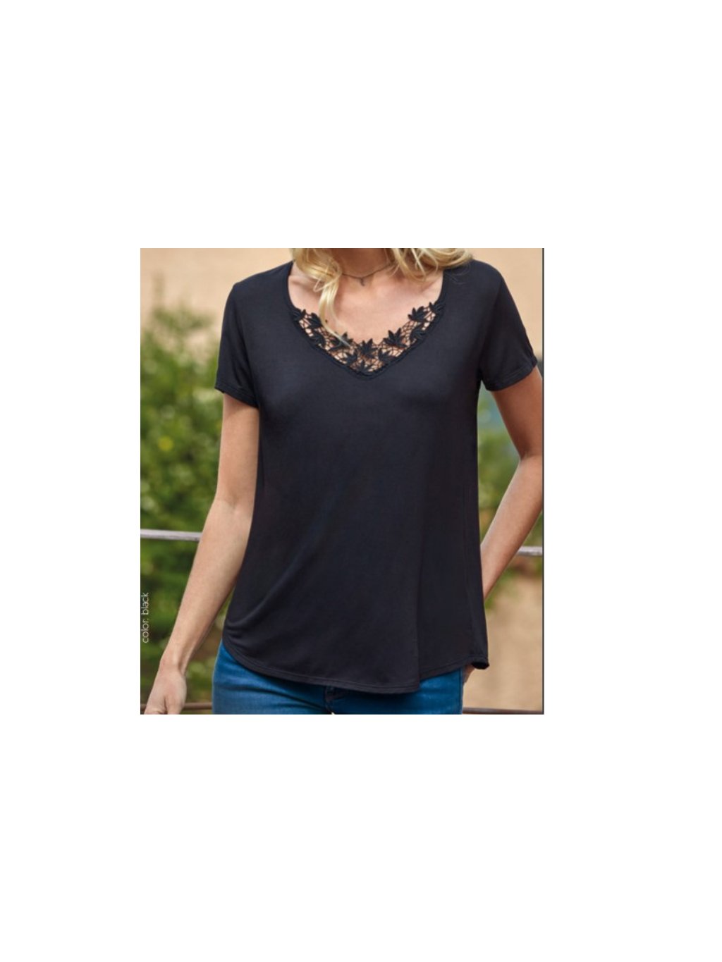 Stylové triko s jemnou krajkou a vkusným výstřihem.