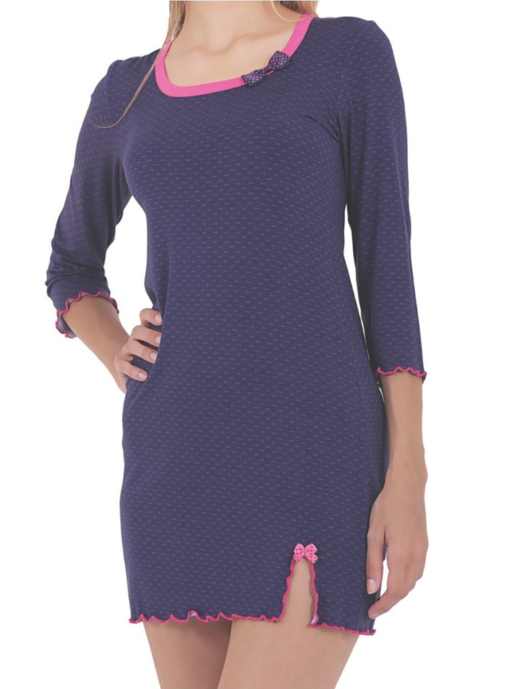 Noční košile s 3/4 rukávem Cocoon secret 825-YKG s kulatým výstřihem ozdobená mašličkou