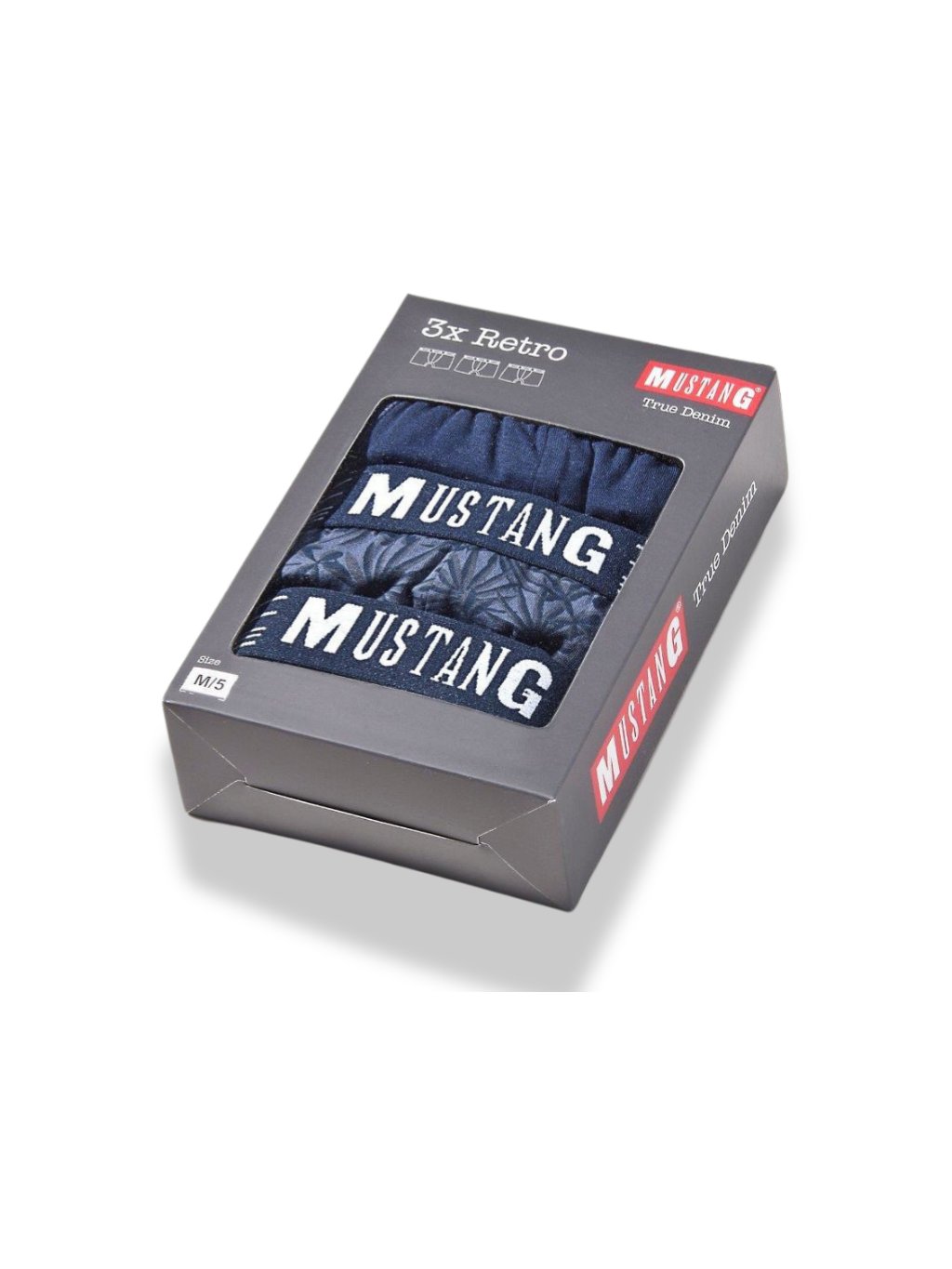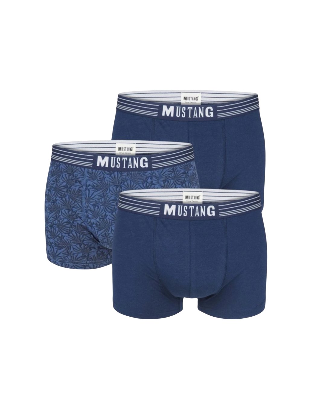 Sportovní pánské boxerky Mustang s pohodlnou širokou gumou v pase a bezešvým zadním dílem pro celodenní komfort.
